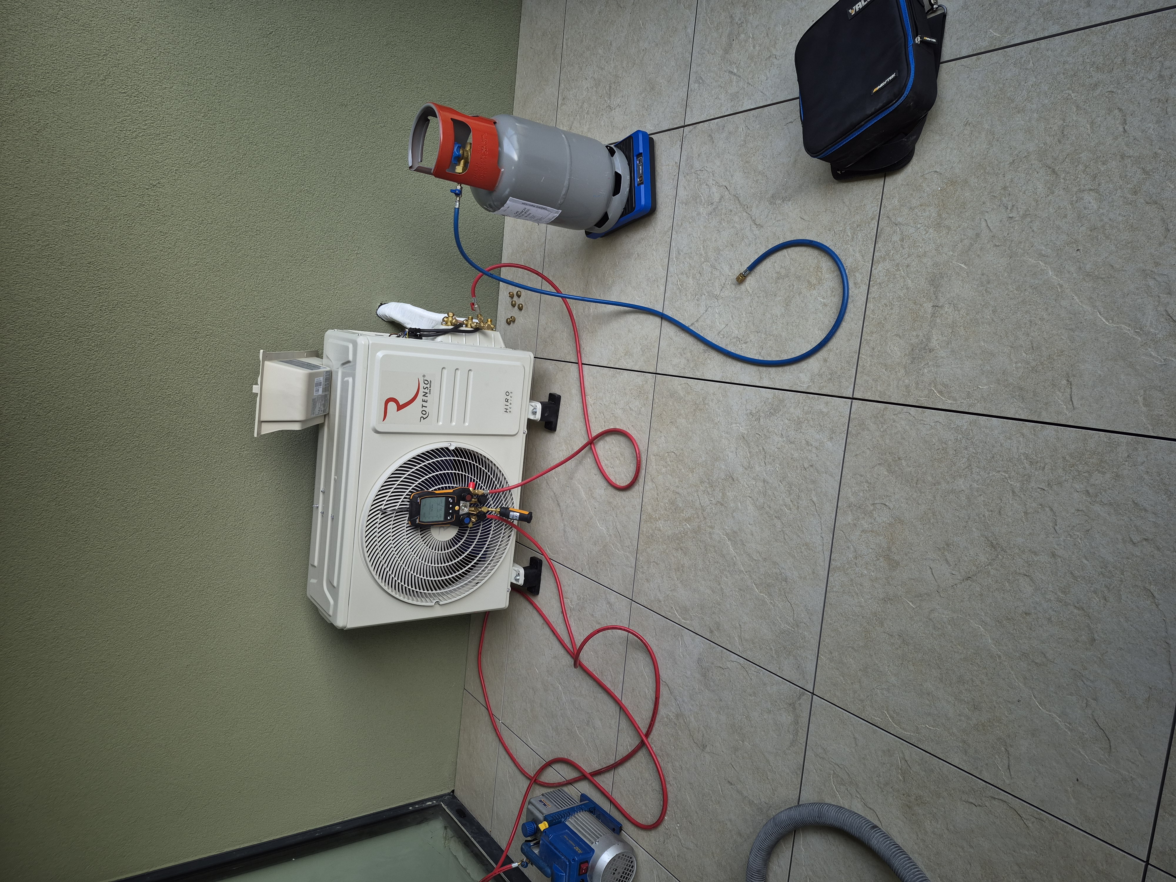 Zrealizowaliśmy montaż klimatyzacji Rotenso Revio w mieszkaniu z balkonem, gdzie jednostka zewnętrzna została umiejscowiona w znacznej odległości od jednostki wewnętrznej. W przypadku długich tras chłodniczych konieczne jest precyzyjne dobicie dodatkowej porcji czynnika chłodniczego R32 — tylko wtedy klimatyzator pracuje z pełną wydajnością i zachowuje gwarancję.
